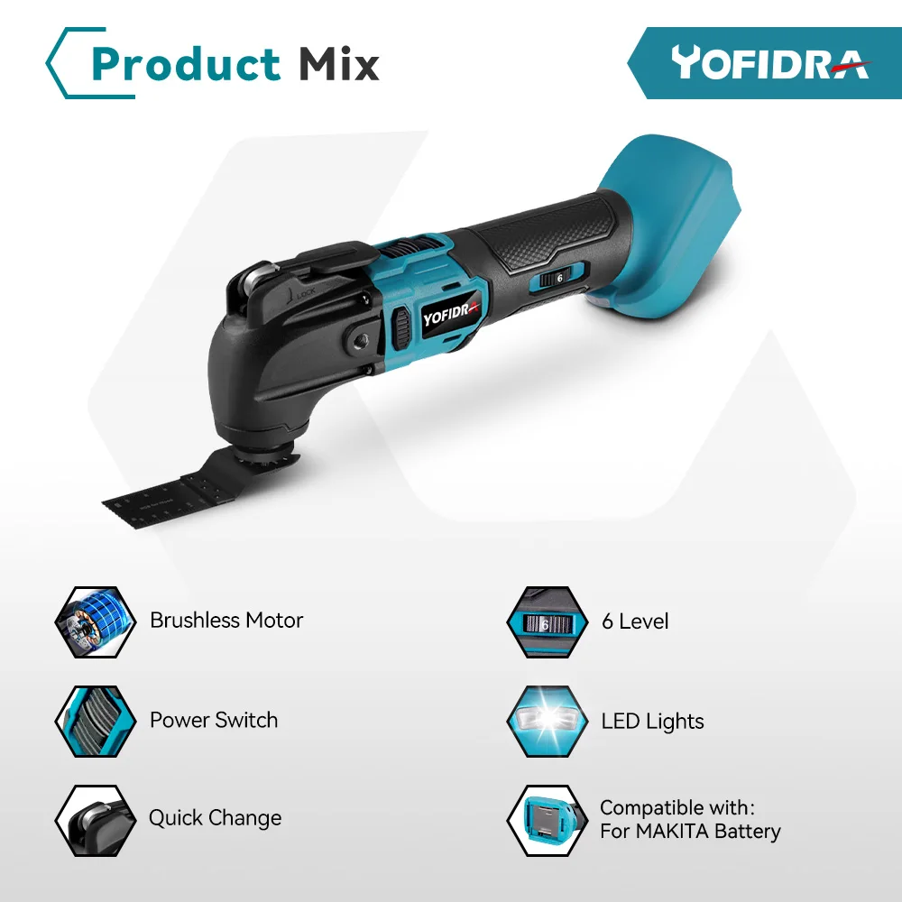 The YOFIDRA Brushless Multifunction Oscillating Tool combines precision, versatility, and durability into one powerful design. It replaces multiple single-function tools, reducing clutter in your workspace and simplifying project management. From cutting and trimming to sanding and polishing, it performs each task with reliable power output. Its brushless motor provides extended lifespan and lower energy consumption. The compatibility with Makita 18V battery pins ensures wide usability and easy integration into existing systems. This electric saw trimmer shovel polisher supports adjustable speed levels, allowing precise control for every application. Designed for both beginners and professionals, the YOFIDRA oscillating tool guarantees smooth performance even under heavy workloads. Users appreciate its ergonomic shape, lightweight structure, and minimal vibration. Available for purchase online, this product continues to receive positive reviews for its performance and cost-effectiveness. For anyone seeking a durable, efficient, and multifunction power solution, the YOFIDRA Brushless Multifunction Oscillating Tool stands as an ideal choice.