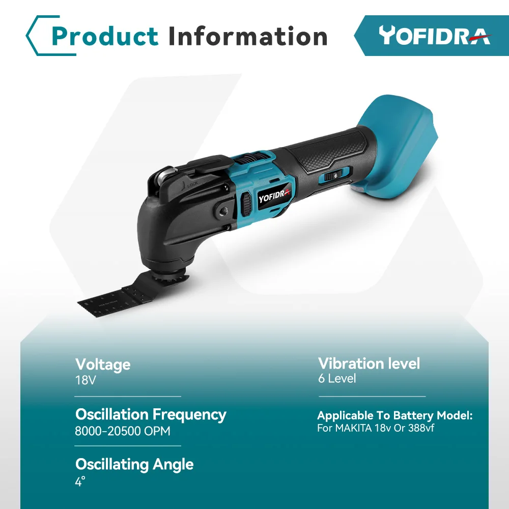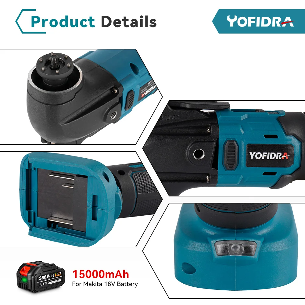 One of the strongest advantages of the YOFIDRA Multifunction Oscillating Tool is its compatibility with the Makita 18V battery pin system. This allows users who already own Makita-powered devices to integrate YOFIDRA tools effortlessly into their setup. The brushless electric saw trimmer, shovel, and polisher all operate seamlessly using the same power source, reducing the need for additional chargers or adapters. The 18V platform ensures strong, stable energy output and longer working sessions between charges. This feature makes it ideal for mobile professionals who perform tasks in remote or outdoor locations. With the YOFIDRA oscillating tool, users can experience reliable cordless performance and easy maintenance. The compatibility also opens opportunities for cost savings since there’s no need to invest in proprietary batteries. As a result, this multifunction power tool attracts both individual craftsmen and small workshop owners who demand flexibility, affordability, and quality in one solution.